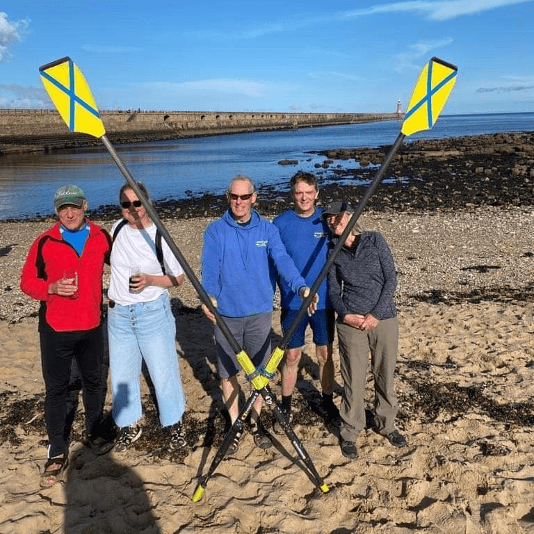 The weather improved significantly and crews pushed to the coast. After the Tyne bridges and a long hard row crews finally finished in significant swell at Tynemouth. At the finish we were met with a surprise seal encounter and a warm reception from Tynemouth Rower’s. A welcome cup of tea with hot food greeted us at the rowing club and results compiled.