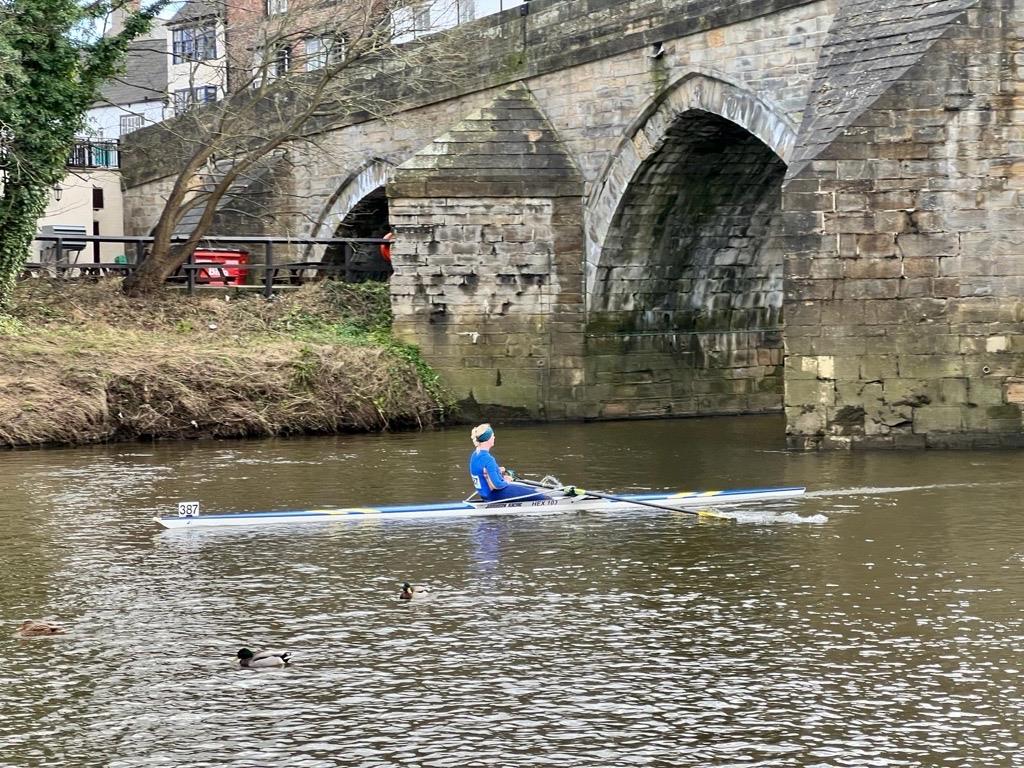 After a steady start, they developed a good consistent pace, and with the benefit of an experienced cox, survived the legendary Elvet Bridge unscathed, going on to finish 0.4 seconds off Sunderland City in first place! Along the way the crew were grateful for the continual coaching, working hard on the finish of their strokes and to keep their focus in the boat and on leaving various landmarks in their wake with a number of pushes!
