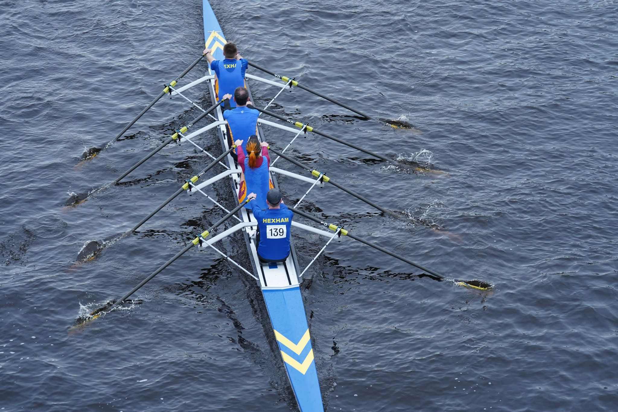 Hexham Rowing Club were out in force on Saturday at Newburn for Tyne Rowing Club’s Tyne Head. The conditions were lovely whilst boating – flat water, mild temperature, no wind and a high tide that was on the turn. There were a few rollers at the starting area below Scotswood Bridge which came as a surprise as the upstream breeze met the outgoing tide and stream, but the race conditions proved favourable and we had a super time.