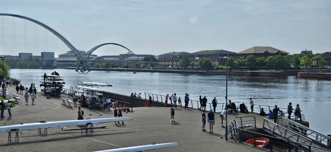On Saturday 11th May, junior and masters crews headed to Tees Rowing Club for their annual regatta, multi-lane racing under the iconic Infinity Bridge. The sun shone, the sausage sandwiches were highly recommended and the River Tees was calm except when following an over enthusiastic launch driver!