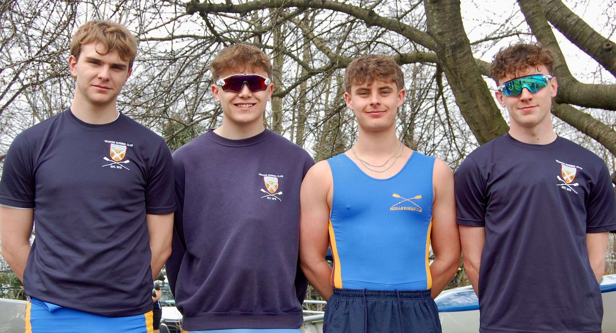 Emma N, Esme P, Emily L and Belle C in a girls Championship 4x and Ethan T, Joe G, Ronan McG and Jacob L in the boys Championship quads. Both crews performed amazingly in their Tideway debuts, against all the top junior quads in the UK.