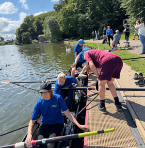 We go out to practice and the senior members are nowhere to be seen. Luckily our saviour arrives in a Filippi bucket hat from Hexham Junior squad. Ethan confidently tells us he’s done it a couple of times and proceeds to give us the best lesson ever, confidently standing up in the boat to demonstrate.